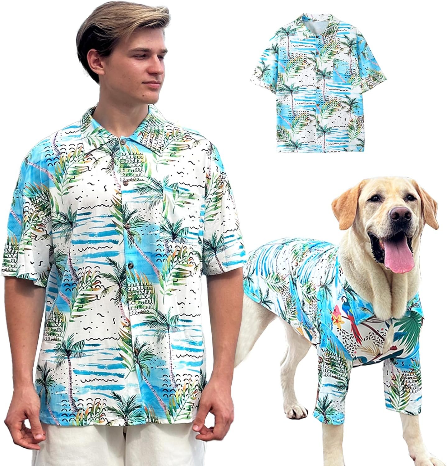 Dog Shirt Hawaii Breathable Cool Beach Style T-Shirt Dog Clothes for Medium to Large Dogs Owners and Pet Shirts Sold Separately,XL Blue